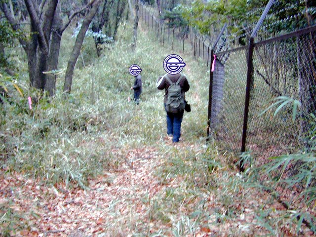 結局赤い印は謎でもなんでもなく、直下に標識が埋まっていることを示していただけらしい。 また脇道があり神奈川県民さんが特攻。 JR中山さんとハミタソは様子見・・ |